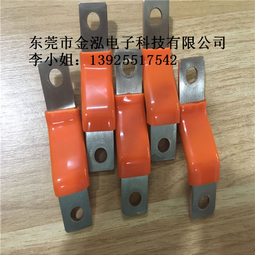 材料:采用優(yōu)質(zhì)0.05~0.3mm厚銅箔,常規(guī)使用0.1厚t2紫銅箔,上下表面貼0.1厚純鎳片,或0.1厚鍍鎳銅片,將疊片部分壓在一起,兩端或者打孔部分采用高分子擴(kuò)散焊,通過(guò)大電流加熱壓焊成型。中間套熱縮管保護(hù),大尺寸異形產(chǎn)品,中間采用浸塑工藝。