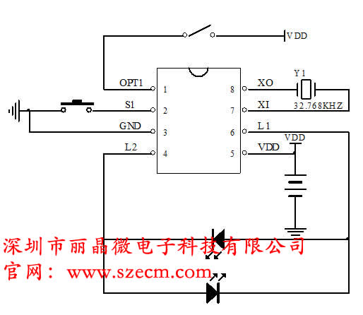 3、 opt0懸空為定時模式,out1、out2有輸出6h,無輸出18h,24h循環(huán);有晶振檢測模式,不接晶振或晶振壞上電無輸出;
