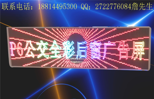 全彩led車載屏、公交車led后窗廣告 屏,利用3g網(wǎng)絡(luò)無限發(fā)布,通過電腦終端,發(fā)布平臺(tái),無限發(fā)布,視頻、圖案、廣告 、數(shù)字、動(dòng)漫、均可顯示!