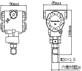 2、安裝時,用扳手夾住m20×1.5的外六角部分,切不可將力作用于壓力變送器外殼。