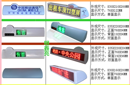 出租車led頂燈屏、出租車led車頂屏、出租車led顯示屏、出租車led電子屏、出租車led車內(nèi)后窗屏、出租車led走字屏。