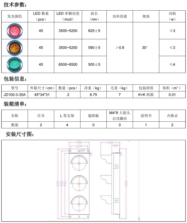 6、100mm紅黃綠滿盤交通燈是采用進口led芯片,發(fā)光亮度高、使用壽命長,采用恒流恒壓供電方式,性能穩(wěn)定;箱體外殼使用五金箱體。