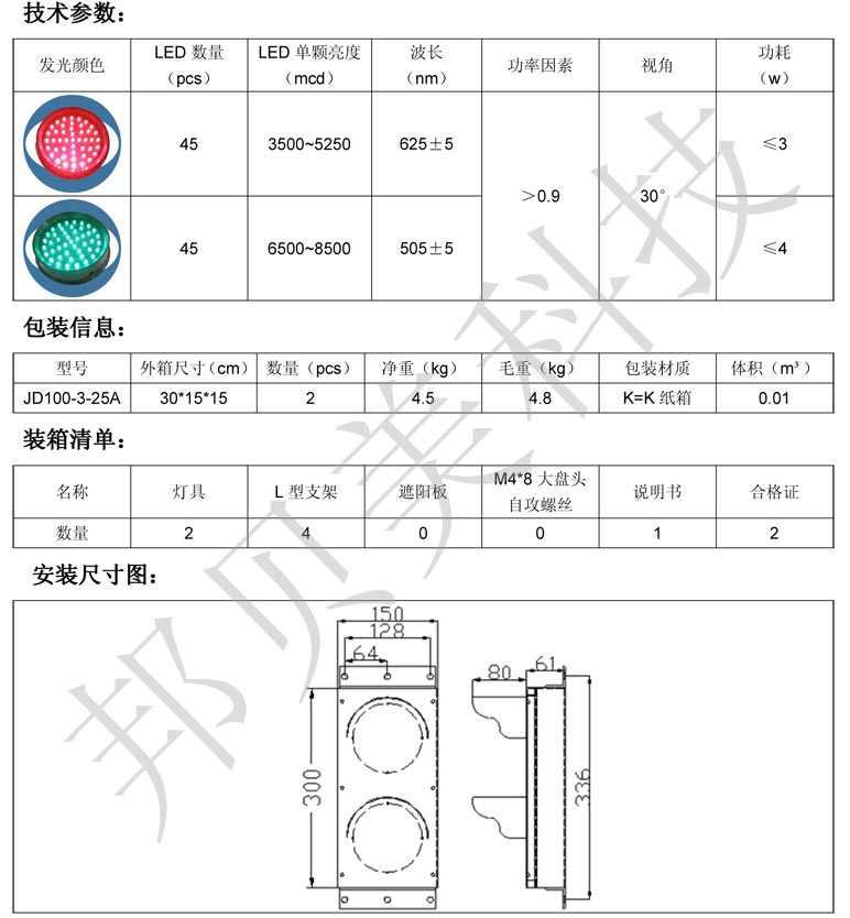 6、100mm紅綠滿盤交通燈是采用進口led芯片,發(fā)光亮度高、使用壽命長,采用恒流恒壓供電方式,性能穩(wěn)定;箱體外殼使用五金箱體。