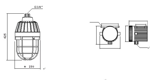 1. 防爆型式隔爆型或粉 塵防爆型,適用于爆炸危險場所照明使用。