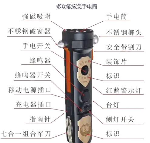 “安 全衛(wèi)士”1968多功能應(yīng)急救援工具組合是一款集(強(qiáng)光手電筒、強(qiáng)光炫日燈、sos求救信號(hào)燈、強(qiáng)力吸附、破窗器、榔頭、安 全帶割刀、高分貝警示報(bào)警器、紅藍(lán)瞥示燈、臺(tái)燈、充電輸入、移動(dòng)電源輸出、應(yīng)急扳手、一字螺絲刀、十字螺絲刀、剪刀、起瓶器、戶外刀、指南針)十九種功能于一一身,是由航空鋁合金及高強(qiáng)度進(jìn)口pc材料打造,產(chǎn)品體積小, 功能強(qiáng)大,攘括了3大部分自救應(yīng)急工具:照明亮度高、續(xù)航時(shí)間長、做到一控在手萬事無擾。主要用于:車載安 全防護(hù),消防應(yīng)急教援,和戶外應(yīng)急使用及家居安 全備用。