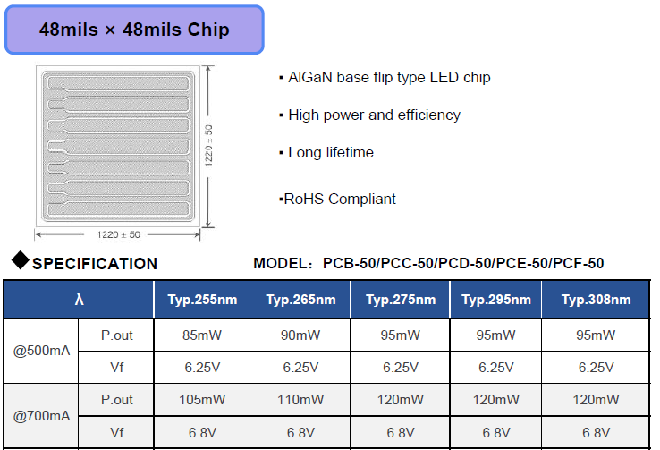 大功率uvc芯片48*48mil消毒殺菌-pw進(jìn)口