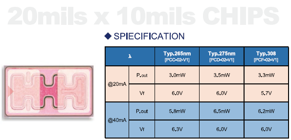 uvb uvc殺菌芯片10*20mil-pw進(jìn)口