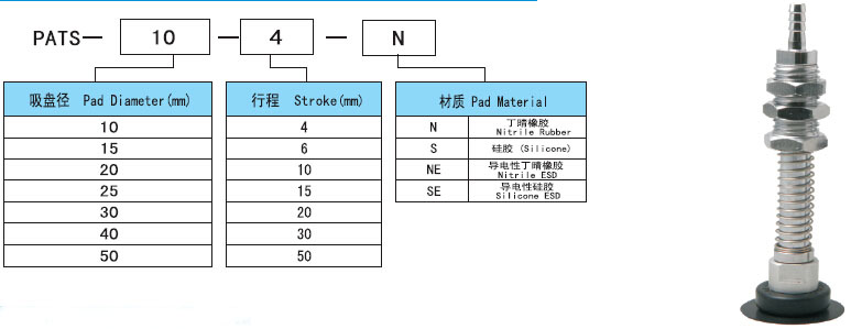 pats立向接管附緩沖薄型吸盤產(chǎn)品訂購圖: