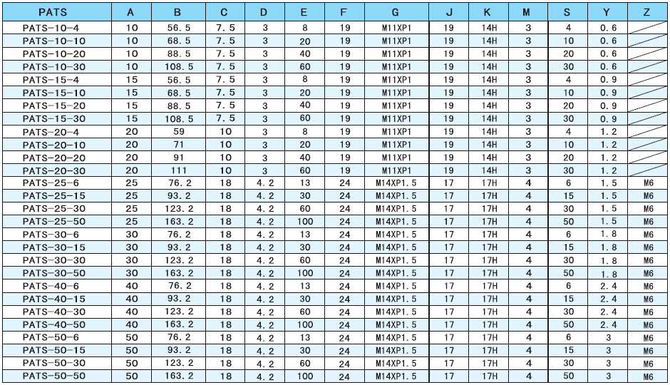 pats立向接管附緩沖薄型吸盤產(chǎn)品規(guī)格尺寸圖表: