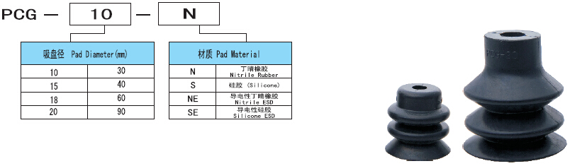 pcg三層風(fēng)琴式真空吸盤產(chǎn)品訂購圖:
