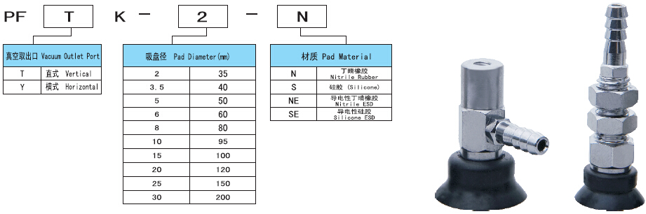 pftk/pfyk系列帶金屬支架標(biāo)準(zhǔn)吸盤訂購圖: