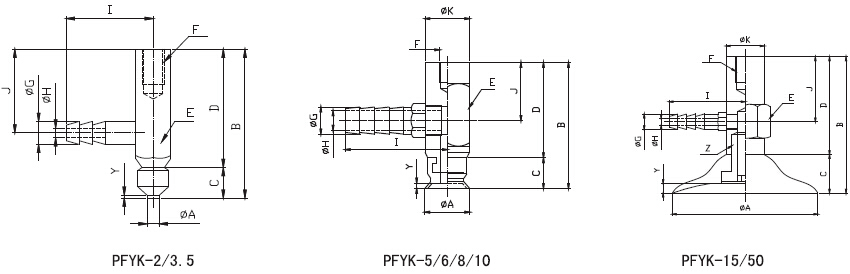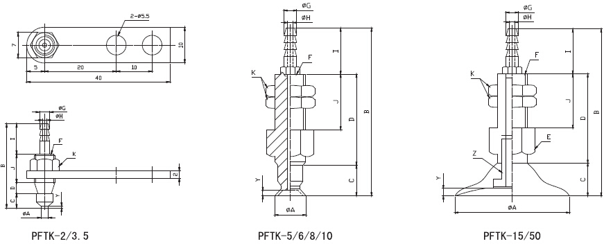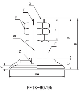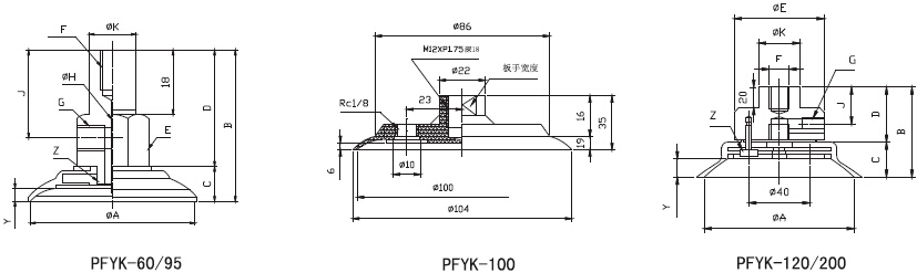 pftk/pfyk系列帶金屬支架標(biāo)準(zhǔn)吸盤外形尺寸圖: