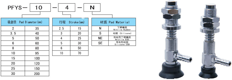 pfys橫向接管附緩沖標準吸盤訂購圖: