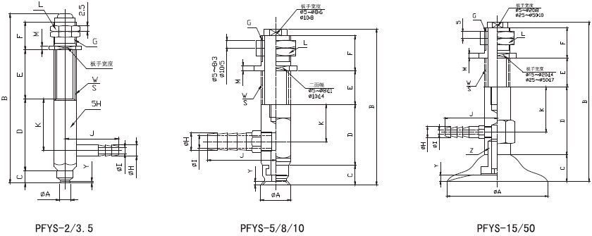 fys橫向接管附緩沖標準吸盤外形尺寸圖: