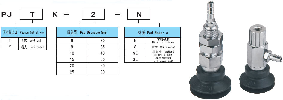 pjtk/pjyk帶金屬支架雙層吸盤規(guī)格圖表: