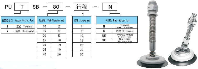 putsb/puysb帶金屬支架附緩沖搖擺吸盤(pán)具備特點(diǎn):