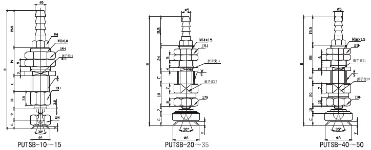 putsb/puysb帶金屬支架附緩沖搖擺吸盤(pán)訂購(gòu)圖: