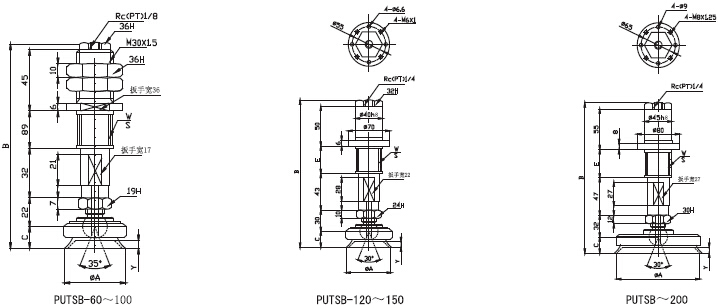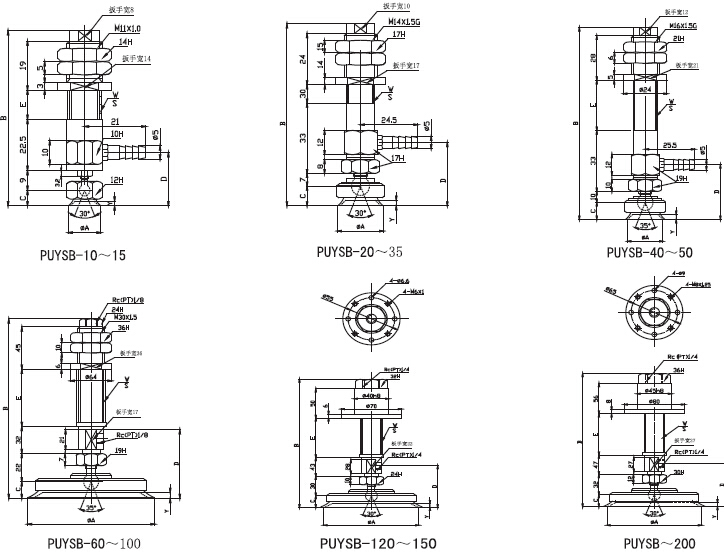 putsb/puysb帶金屬支架附緩沖搖擺吸盤(pán)外形尺寸圖: