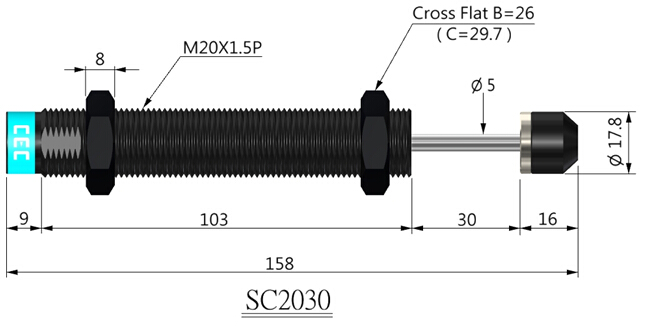 sc2030自動(dòng)補(bǔ)償型油壓緩沖器尺寸圖: