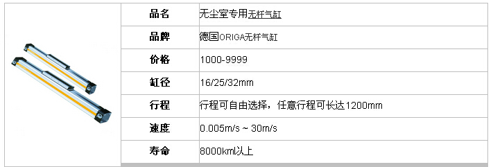 origa無塵室用無桿氣缸詳細(xì)參數(shù):