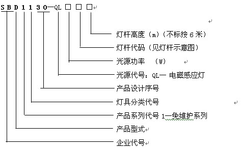 選型舉例:例如sbd1130-yql200表示免維護(hù)系類防爆泛光燈具,電磁感應(yīng)燈光源,吸壁式安 裝,功率200w