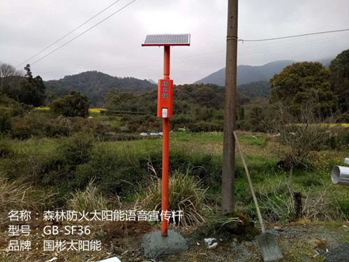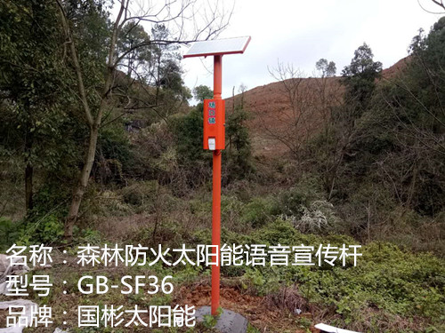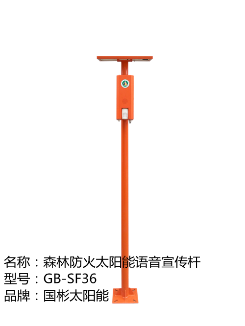 森林消防太陽能電子語音提示器系統(tǒng),全名為:森林消防太陽能電子語音提示器系統(tǒng),型號:gb-sf36,由深圳市國彬電子有限公司研發(fā)制造。立桿總高3.5米,全身橘紅色,采用太陽能供電,能在工作溫度-20℃-50℃工作5-8年,距離2-12米之內(nèi)都能感應(yīng)播報語音。