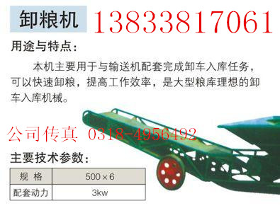 卸糧機主要用于與輸送機配套完成卸車入庫任務,可以快速卸糧,提高工作效率,是大型糧庫理想的卸車入庫機械。 規(guī)格 500×6 配套動力 3kw 可以根據(jù)客戶要求量身定做加工