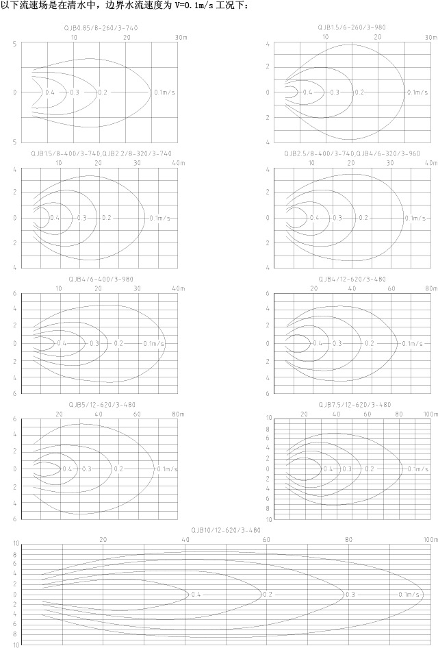 潛水?dāng)嚢铏C的選型是一項比較復(fù)雜的工作,選型的正確與否直接影響設(shè)備的正常使用,作為選型的原則就是要讓攪拌機在適合的容積里發(fā)揮充分的攪拌功能,一般可用流速來確定。根據(jù)污水處理廠不同的工藝要求,攪拌機最佳流速應(yīng)保證在0.15~0.3m/s 之間,如果低于0.15m/s 的流速則達不到推流攪拌效果,超過0.3m/s 的流速則會影響工藝效果且造成浪費。所以在選型前首先確定潛水?dāng)嚢铏C運用的場所,如:污水池、污泥池、生化池;其次是介質(zhì)的參數(shù),如:懸浮物含量、粘度、溫度、ph 值;還有水池的形狀、水深等。攪拌機所需的配套功率是按容積大小、攪拌液體的密度和攪拌深度而確定的,根據(jù)具體情況采用一臺或多臺攪拌機。
