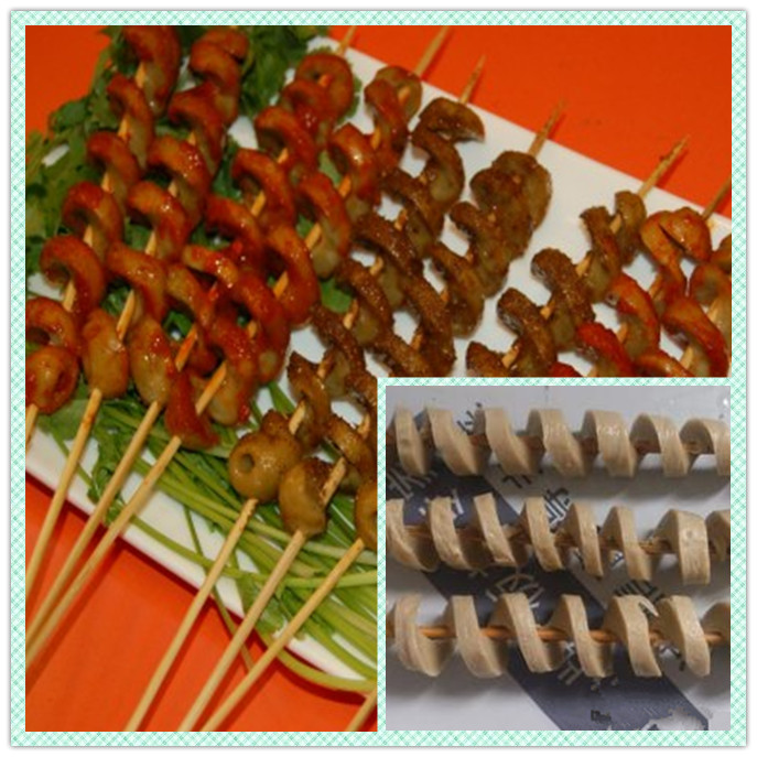 可一次制作30公分長度面筋串,適合快速大量制作烤面筋串纏繞,節(jié)省勞力可使用我公司獨家開發(fā)固定纏面桿纏制單個面筋串,該固定纏綿桿纏繞出來的面筋退桿時可進行自行翻卷,可將纏繞后的面筋頭反轉到面筋內部,煮制時再不用擔心開邊的問題,對于沒有制作過烤面筋的朋友,一分鐘就能學會美觀面筋串的制作。