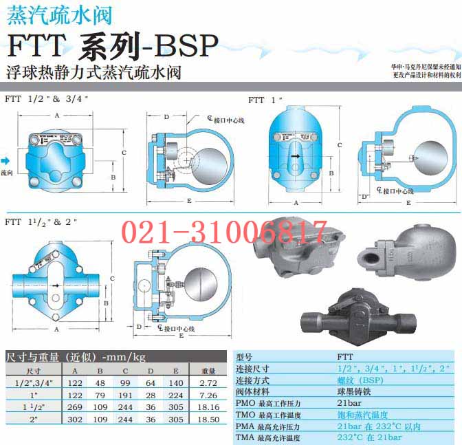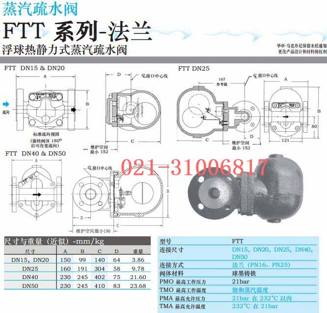 馬克丹尼ftt浮球式疏水閥的規(guī)格尺寸: