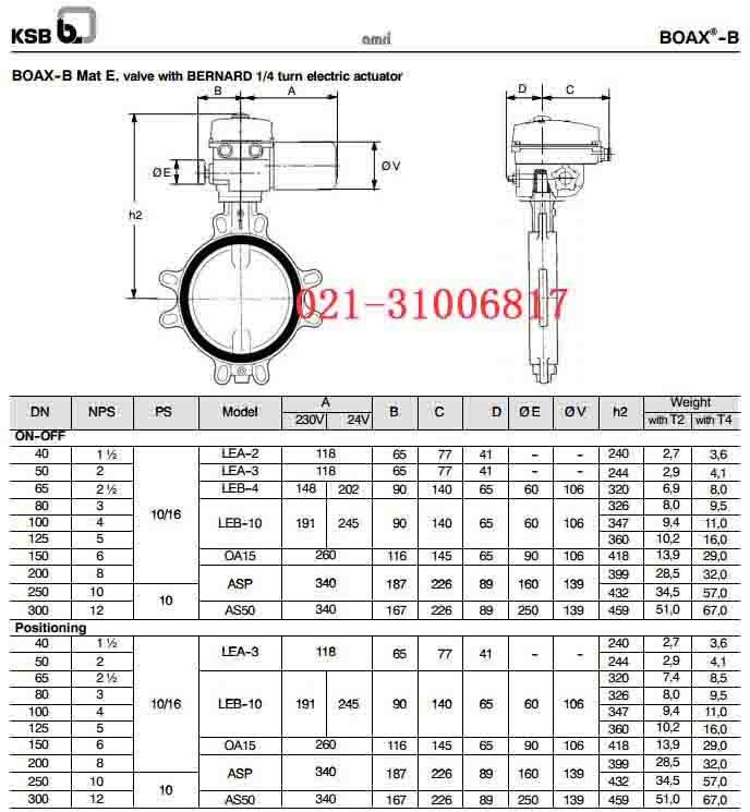 ksb凱士比boax-b電動(dòng)蝶閥的規(guī)格結(jié)構(gòu)圖:
