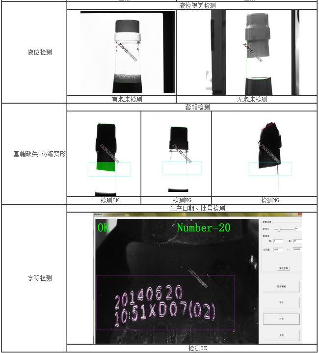 pet瓶封蓋液位噴碼檢測系統(tǒng)是欣維視覺科技有限公司自主研發(fā)的一套在線檢測系統(tǒng),可用于檢測pet瓶在生產(chǎn)過程中,有無蓋子、蓋子偏高、蓋子歪斜、安全蓋歪斜;套帽在熱縮后變形、偏高、缺失等;在灌裝后液位不足,噴碼不良、缺失、漏噴;標(biāo)簽貼歪、漏貼。該系統(tǒng)優(yōu)勢在于檢測精度高,處理速度快,穩(wěn)定性好,能自動(dòng)剔除各個(gè)工位檢測不良品,操作簡單、快捷、方便。