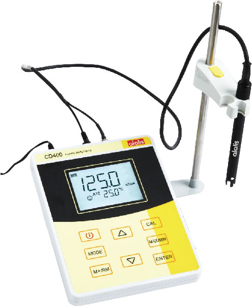 cd400型主機,e2211t塑殼電導(dǎo)電極(k=1,atc),電極架,電導(dǎo)率校正溶液,9v電源適配器。