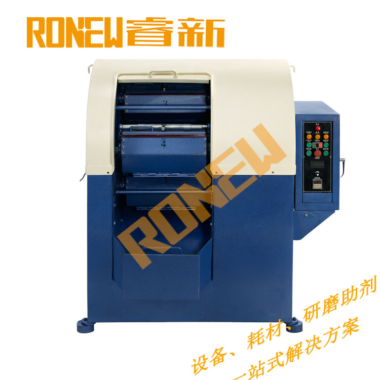 內(nèi)置四個滾筒,滾筒隨圓盤高速旋轉(zhuǎn)即產(chǎn)生公轉(zhuǎn)和自轉(zhuǎn)的相對運動,從而得到了滾筒中零件和研磨石,水和研磨劑的相互擠壓的磨削運動?稍跇O短時間內(nèi)迅速完成零件表面的去毛刺、表面氧化層及拋光的加工?山档土慵砻娴慕佑|疲勞強度和提高零件表面光潔度,精度2-3級。如將四個研磨槽傾斜15度更具有超短時間研磨的超高性能。