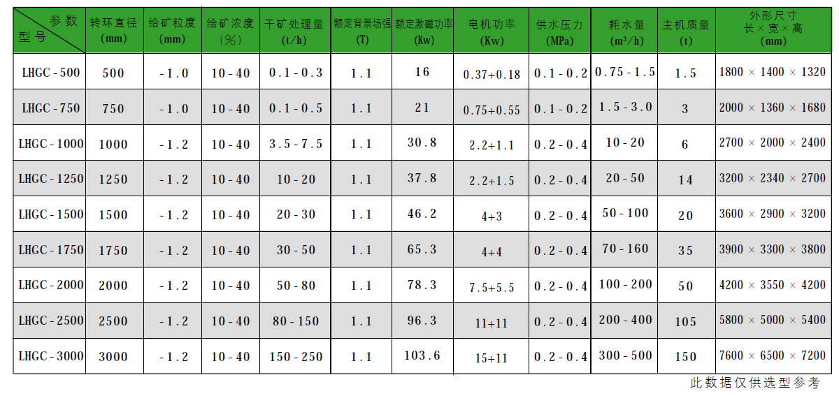 lhgc 系列脈動(dòng)高梯度磁選機(jī)包括lhgc-500、lhgc-750、lhgc-1000、lhgc-1250、lhgc-1500、lhgc-1750、lhgc-2000、lhgc-2500、lhgc-3000等多種標(biāo)準(zhǔn),廣泛適用于赤鐵礦、褐鐵礦、菱鐵礦、鉻鐵礦、鈦鐵礦、黑鎢礦、鉭鈮礦等弱磁性金屬礦的濕式分選,以及非金屬礦如石英、長石、霞石、螢石、硅線石、鋰輝石、高嶺土等非金屬礦產(chǎn)的除鐵提純。其分選環(huán)選用立式改變,精礦卸礦選用反沖辦法,并配有分選脈動(dòng)設(shè)備,從根本上處理了平環(huán)工作辦法及傳統(tǒng)立環(huán)磁選機(jī)磁介質(zhì)易堵塞的疑問;其磁介質(zhì)選用公司自行研制的專利產(chǎn)品,可發(fā)作更高的磁場梯度,然后發(fā)作更大的磁場力,前進(jìn)分選效果。該系列產(chǎn)品結(jié)構(gòu)搶先,工作牢靠,操作修理便當(dāng),工作周期長,分選效率高,對給礦粒度、給礦濃度、給礦層次的不堅(jiān)定具有廣泛的適應(yīng)性,完成了富礦比大、回收率高這一選礦志向方針。(小型磁選機(jī))