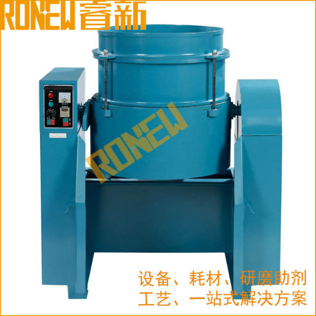 中回轉(zhuǎn)底盤以一定轉(zhuǎn)速旋轉(zhuǎn),使工件與加工介質(zhì)的混合物產(chǎn)生螺旋狀的渦流運動,并使其產(chǎn)生強