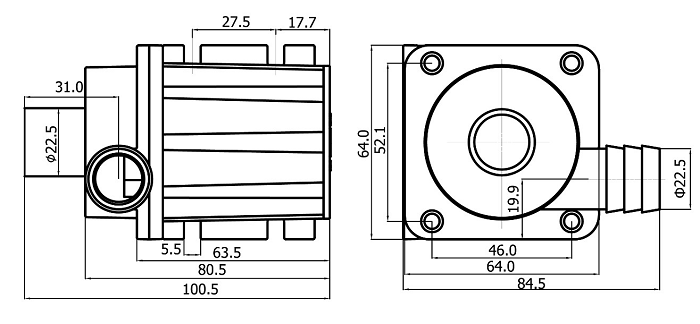 3 | 水泵進(jìn)水口外徑 | 22.5mm |