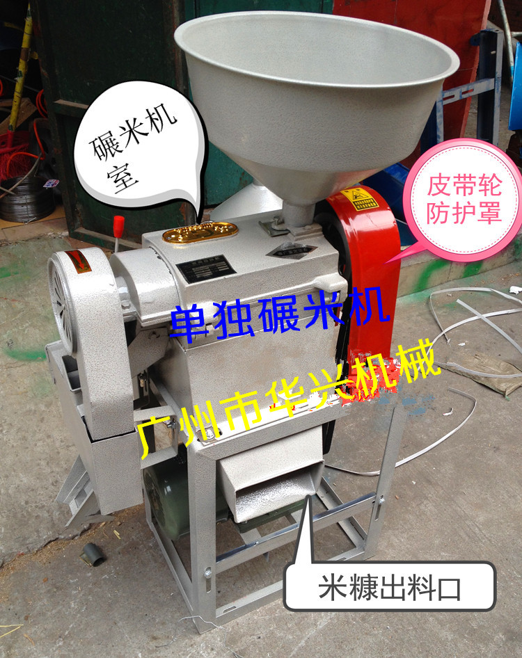 本機(jī)器主要是由米機(jī)、電機(jī)、機(jī)架等三大部分組成,米機(jī)主要由機(jī)蓋、中座、機(jī)座、米輥、米篩、米刀、進(jìn)料斗、溜篩、皮帶輪、調(diào)節(jié)裝置組成。