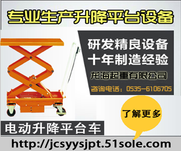 電動升降平臺車,又叫手推電動升降平臺車,是我公司(龍海起重)自主品牌“龍升”電動升降平臺系列產品。電動升降平臺車分為:單剪式電動升降平臺車和雙剪式電動升降平臺車。