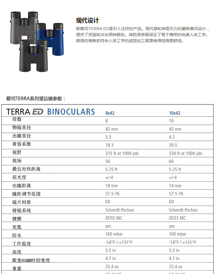 terra ed 8x42基本參數