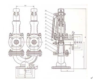 進(jìn)口雙聯(lián)彈簧式安全閥外形尺寸圖表