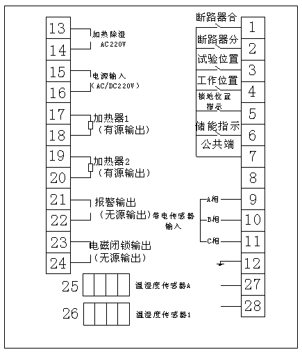 注:加熱器要求功率必須大于 100w,要求接風(fēng)機時裝置無斷線報警功能。