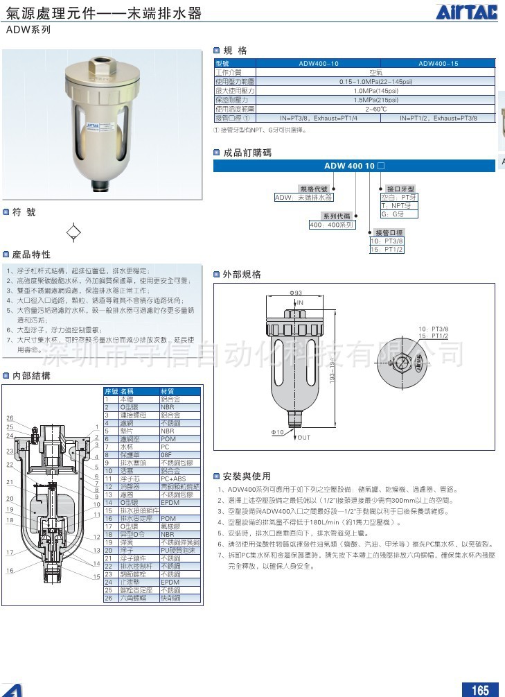 品牌 | airtac/亞德客 | 型號 | adw400-10,adw400-15 | 調(diào)壓范圍 | 0.15~1.0(mpa) |
