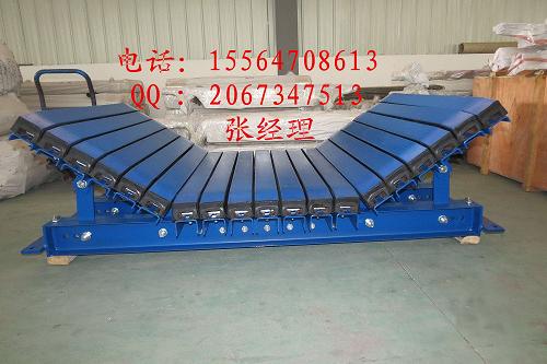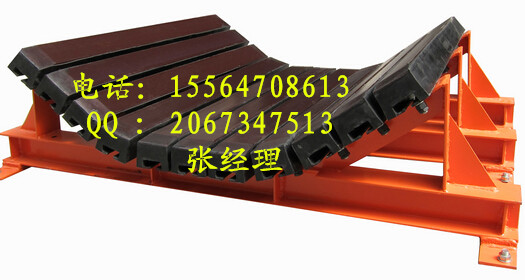 以往皮帶機(jī)落料點的保護(hù)主要依賴緩沖托輥,由緩沖托輥固有形態(tài)特征決定了緩沖托輥與皮帶機(jī)接粗面積小,而且受力不均勻。德國工程師為更好地保護(hù)皮帶機(jī)以及降低能耗研發(fā)了緩沖床及緩沖條,后來引入中國。