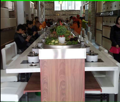 柳州回轉(zhuǎn)火鍋設(shè)備廠家 柳州自助旋轉(zhuǎn)火鍋設(shè)備是一種新興的餐飲模式,它是由日式壽司傳送裝置結(jié)合中國(guó)傳統(tǒng)火鍋文化演變而來(lái),這種具有創(chuàng)新性和新穎獨(dú)特性的旋轉(zhuǎn)火鍋有很大的發(fā)展空間。旋轉(zhuǎn)火鍋的使用顧客、服務(wù)員不必東奔西跑,是采用回轉(zhuǎn)機(jī)械輸送菜品,免去人員傳送環(huán)節(jié),節(jié)省人力成本,增加收益率。山西旋轉(zhuǎn)火鍋設(shè)備安 全衛(wèi)生,輸送帶是采用不銹鋼制造,整個(gè)傳動(dòng)系統(tǒng)是采用密封式設(shè)計(jì),輸送鏈帶結(jié)構(gòu)嚴(yán)謹(jǐn),運(yùn)行安 全無(wú)噪音,讓顧客加餐更方便,環(huán)境安 靜無(wú)噪音。旋轉(zhuǎn)火鍋設(shè)備 小火鍋設(shè)備 自助小火鍋設(shè)備 正對(duì)的市場(chǎng)消費(fèi)群體:旋轉(zhuǎn)火鍋設(shè)備店倡導(dǎo)“美味健康、花錢少”的經(jīng)營(yíng)理念,所花費(fèi)的錢都是中低檔生活水平能消費(fèi)的起的,一般來(lái)說(shuō)如此新穎的火鍋和時(shí)尚的裝修,大多數(shù)食客還是中學(xué)、大學(xué)生最多,其次,火鍋是最容易受到大學(xué)生群體的喜愛(ài),尤其是在冬季,好幾個(gè)人去吃火鍋,其氛圍也熱鬧。旋轉(zhuǎn)火鍋設(shè)備一改傳統(tǒng)的大鍋、鴛鴦鍋的吃法,提供自動(dòng)服務(wù),一人一鍋,方便衛(wèi)生,學(xué)生大部分追求個(gè)性、新穎、干凈,因此旋轉(zhuǎn)火鍋的主要消費(fèi)者還是學(xué)生居多;剞D(zhuǎn)火鍋 旋轉(zhuǎn)火鍋的主要包含以下幾個(gè)部分:回轉(zhuǎn)火鍋支架、動(dòng)力系統(tǒng)、輸送鏈條。鏈板及鏈條均采用304磨沙面沖壓而成,板厚1.8mm,寬度140mm,鏈條節(jié)距100mm,鏈條下部分導(dǎo)軌面板采用304銹鋼鏡面,板厚度為1.2mm,內(nèi)部采用白色防摩尼龍墊條回轉(zhuǎn)火鍋設(shè)備的長(zhǎng)度以輸送鏈條的展開(kāi)長(zhǎng)度計(jì)算,回轉(zhuǎn)設(shè)備的形狀、長(zhǎng)度根據(jù)餐廳設(shè)計(jì)。diy可選配件:供熱水系統(tǒng)、水龍頭,熱水器、腳踏,柜體裝飾板。適用范圍:回轉(zhuǎn)火鍋、回轉(zhuǎn)壽司、旋轉(zhuǎn)火鍋、旋轉(zhuǎn)壽司、回轉(zhuǎn)自助火鍋、旋轉(zhuǎn)自助火鍋。 關(guān)于回轉(zhuǎn)火鍋傳送帶的日常保養(yǎng)方法 : 在使用中,由于傳送帶在不停的轉(zhuǎn)動(dòng),是最容易出現(xiàn)磨損的部件之一,為了增加該機(jī)器的使用壽命,南京然熙達(dá)已經(jīng)采用進(jìn)口材料,優(yōu)質(zhì)的不銹鋼材料,具有極高的使用性能,確保用戶在使用中,傳送穩(wěn)定,增加使用壽命,用戶在使用中,也要經(jīng)常檢查一下,傳送帶的螺絲、各個(gè)相扣的環(huán)節(jié),確?梢哉J褂,定期給設(shè)備添加潤(rùn)滑油,(最好一個(gè)月一次)這樣可以有效的增加火鍋設(shè)備的使用壽命。