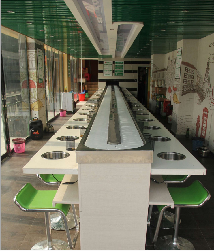 就坐在舒適的椅子上看著眼前的食材,喜歡就拿,不喜歡就讓其繼續(xù)輸送過(guò)去即可。既節(jié)約人力資源投入,也方便消費(fèi)者,更具有安 全、快捷、衛(wèi)生、舒適、美觀、時(shí)尚等特點(diǎn)。 回轉(zhuǎn)小火鍋設(shè)備價(jià)格多少,其實(shí)這沒(méi)有一個(gè)具體的數(shù)字,完整的回轉(zhuǎn)小火鍋設(shè)備包括臺(tái)架裝置、動(dòng)力裝置、輸送帶、供電系統(tǒng)以及裝飾等等,隨每個(gè)客戶(hù)的要求不一樣價(jià)格也是隨之波動(dòng),
