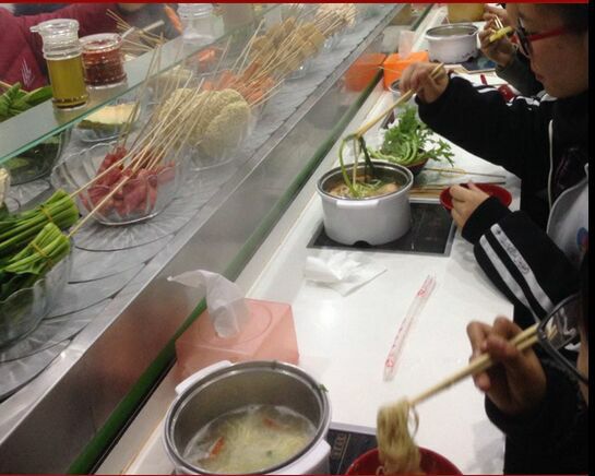 1、傳動(dòng)系統(tǒng)采用科學(xué)的密封式設(shè)計(jì),設(shè)備運(yùn)行安 全平靜,一人一鍋的飲食模式符合食品衛(wèi)生要求。2、節(jié)省人力物力:客人在各自的座位上可隨意選擇擺放在輸送帶上的食品,