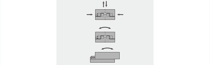 由于滾子被互相垂直地排列,所以能承受作用在工作臺上的所有方向的負(fù)荷,參考下圖:
