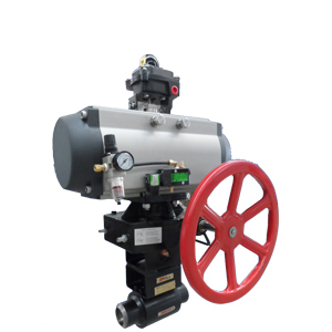 采用新型氣動(dòng)執(zhí)行器,有雙作用式和單作用式(彈簧復(fù)位),齒輪齒條傳動(dòng),安 全可靠;大口徑閥門采用氣動(dòng)執(zhí)行器拔叉式傳動(dòng),結(jié)構(gòu)合理,輸出扭矩大,有雙作用式和單作用式。