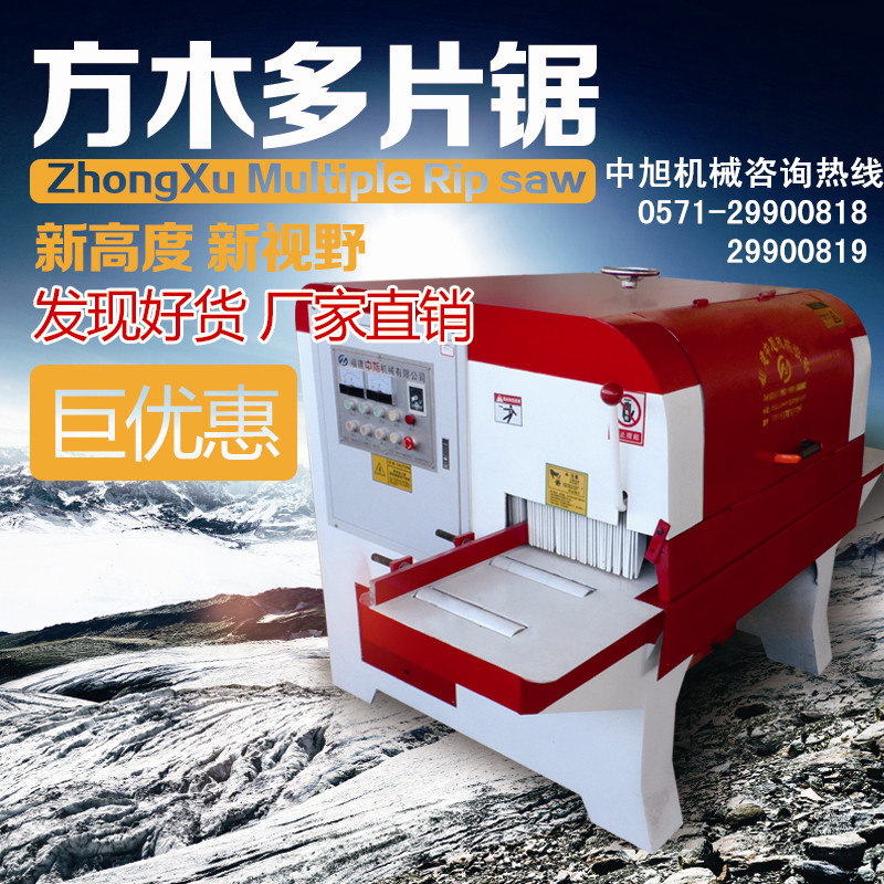 新款方木多片鋸工效是傳統(tǒng)工藝的4~6倍,普工只需經(jīng)二個班的崗前培訓就能熟練操作,薪酬成本可大大降低,無需高薪聘請專業(yè)師傅操作,現(xiàn)在人才難求,薪酬成本可是很高的。而帶鋸因結構松散,鋸片易損,影響機鋸質量的因素 多,安 全系數(shù)低,維修頻繁、操作與維修勞動強度均較大,造成了工人技術要求高,員工工資也普遍偏高。我廠生產(chǎn)的方木多片鋸是您提高生產(chǎn)效率,擴大生產(chǎn)規(guī)模,節(jié)約勞動成本的最佳選擇!我廠方木多片鋸榮獲多項國家專利和榮譽,高尚的品牌文化(企業(yè)通過iso900認證),超強的產(chǎn)品質量(杭州中旭牌方木多片鋸有ce認證,檢驗合格報告,符合木工機械行業(yè)標準),完善的服務團隊(我們會定時和客戶溝通機器的使用情況),專業(yè)的售后服務團隊,每一臺方木多片鋸都有我們公司一對一 教客戶使用。對于這么優(yōu)秀的企業(yè),選擇它絕對沒有錯!